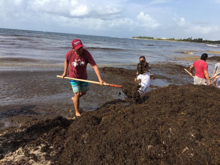 Realidades.- Juan Carlos Beristain fue captado en fotografía mientras el y su equipo colaboraban con otros voluntarios desde las 7:00 am en la limpieza de Punta Esmeralda, Playa ubicada en la zona norte del litoral de Playa del Carmen.