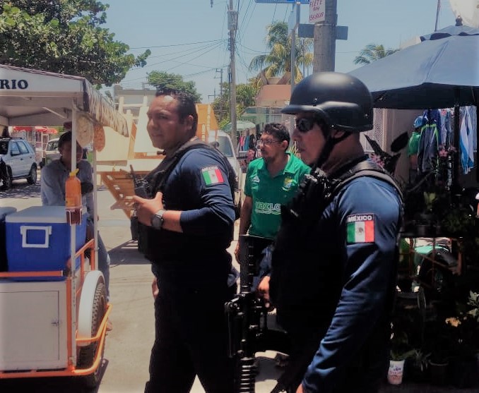 Realidades.- En el marco de la estrategia de seguridad implementada por la presidenta municipal, Laura Beristain Navarrete, el encargado de despacho de la Dirección General de Seguridad Pública y Tránsito de Solidaridad, Jorge Robles Aguilar, supervisó el operativo permanente a pie que se realiza para mantener presencia en los diferentes tianguis de la ciudad y la delegación de Puerto Aventuras, a fin de prevenir la delincuencia y atender a la ciudadanía.