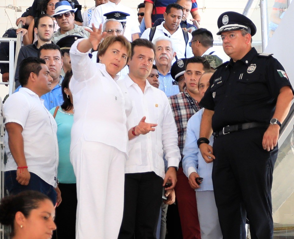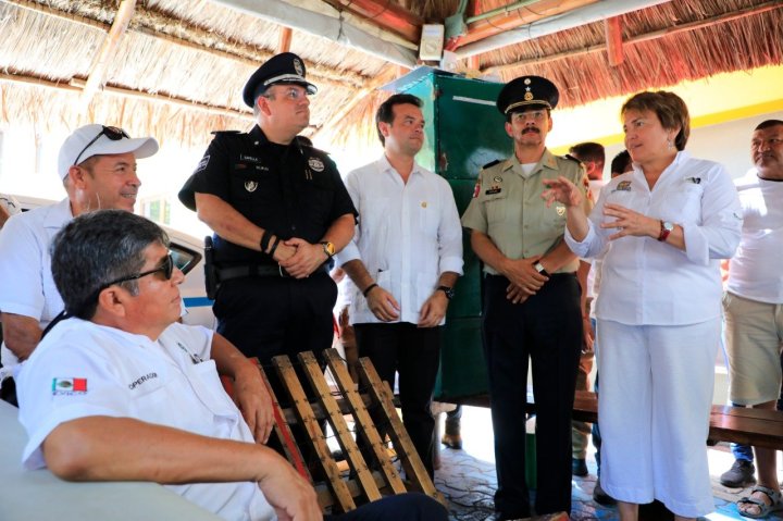 La presidenta municipal, Laura Beristain Navarrete, recorrió junto al alcalde de Cozumel, Pedro Joaquín Delbouis, el titular de Seguridad Pública de Quintana Roo, Alberto Capella Ibarra; autoridades militares, policiales y portuarias, la zona turística de Playa del Carmen –en los alrededores del muelle fiscal- en atención a la seguridad y movilización coordinada entre destinos turísticos.