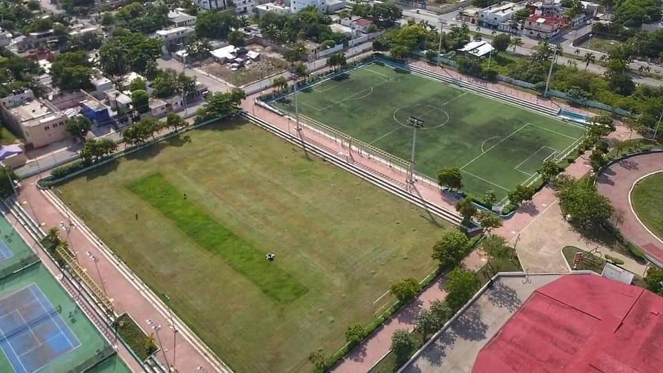 Igualmente se están realizando obras en la pista de tartán del Deportivo “Mario Villanueva” a la cual desde su inauguración no se le había dado mantenimiento.