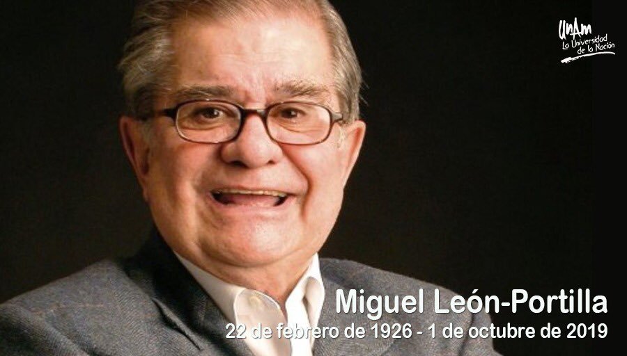 La Universidad Nacional Autónoma de México informa del muy lamentable deceso, a los 93 años, del Dr. Miguel León-Portilla, ilustre universitario, humanista, maestro de maestros, investigador emérito y doctor honoris causa de esta casa de estudios.