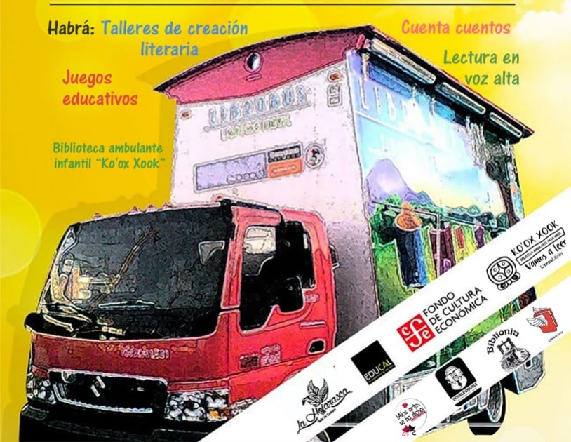 El 11.10.2019 el librobús llegará a Puerto Aventuras donde además de libros habrá talleres de creación literaria y juegos educativos.