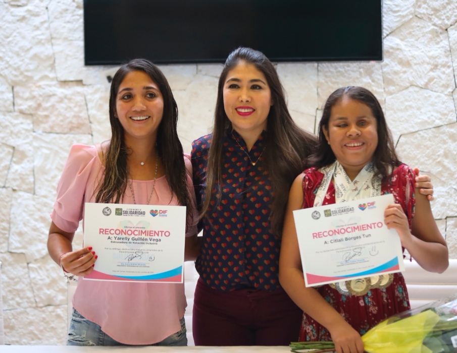 Acompañada de su entrenadora, Yareli Guillen Vega y su mamá María Tun, la usuaria del programa de Natación Inclusiva, agradeció a esta institución el apoyo permanente que ha recibido. Agregó que estos resultados no son de ella, sino de todas las personas que han estado a lo largo de los 4 años que han practicado esta disciplina.