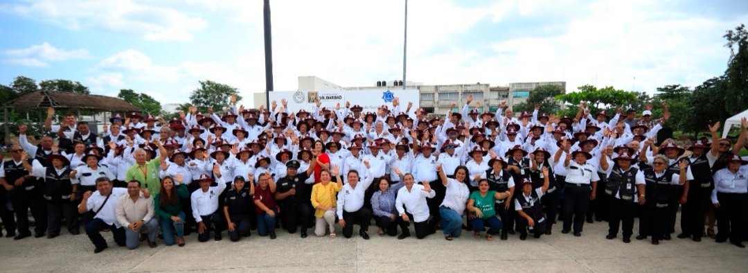 Realidades.- “Trabajando unidos generamos una comunidad fuerte y fortalecemos el tejido social”, dijo la presidente municipal, Laura Beristain Navarrete, al entregar uniformes nuevos a los 209 adultos mayores, integrantes del programa “Vigilantes Ciudadanos”, quienes son los encargados de cuidar y resguardar, afuera de las escuelas, a los estudiantes del Solidaridad.