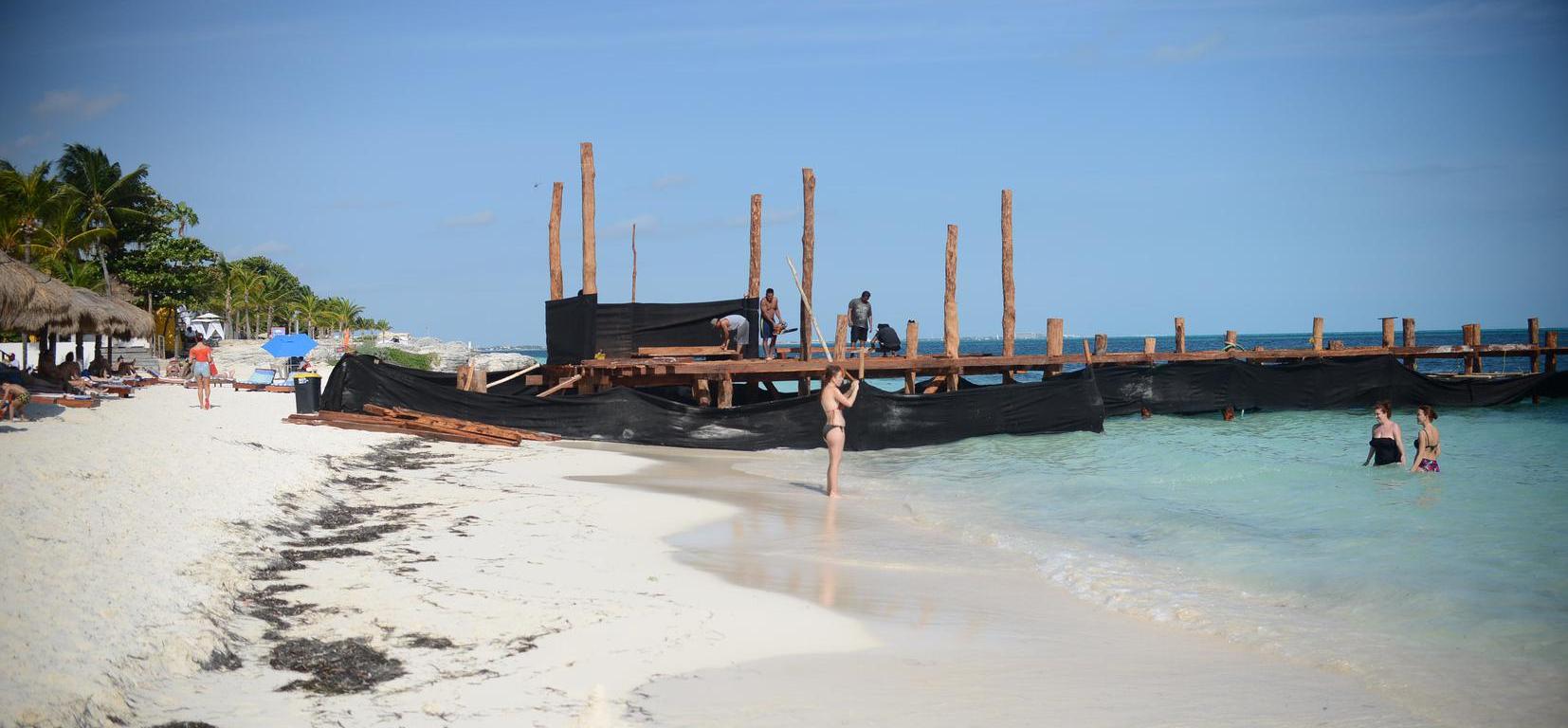 Desde hace unas semanas, en el kilómetro 6.3 de la Zona Hotelera de Cancún, en playa Tortugas, un predio que ocupa alrededor de 600 metros cuadrados de la Zona Federal Marítimo Terrestre, se edifica un muelle que servirá como atracadero de embarcaciones menores de recreo, deportivas y turísticas para el embarque y desembarque de personas.