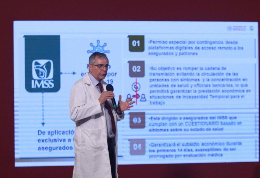 Durante la conferencia de prensa sobre el informe diario del COVID-19 en México, el doctor Mauricio Hernández Ávila, director de Prestaciones Económicas y Sociales del IMSS, informó que este es un permiso único en la historia del Instituto para las y los trabajadoras asegurados, en congruencia con la declaratoria de pandemia hecha por la Organización Mundial de la Salud (OMS).