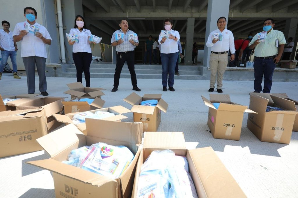 Los más de 500 kits, otorgados por el Sistema DIF Solidaridad, contienen cubrebocas, guantes, un jabón y un gel antibacterial, además de un tríptico donde se brindan recomendaciones útiles de sanidad.