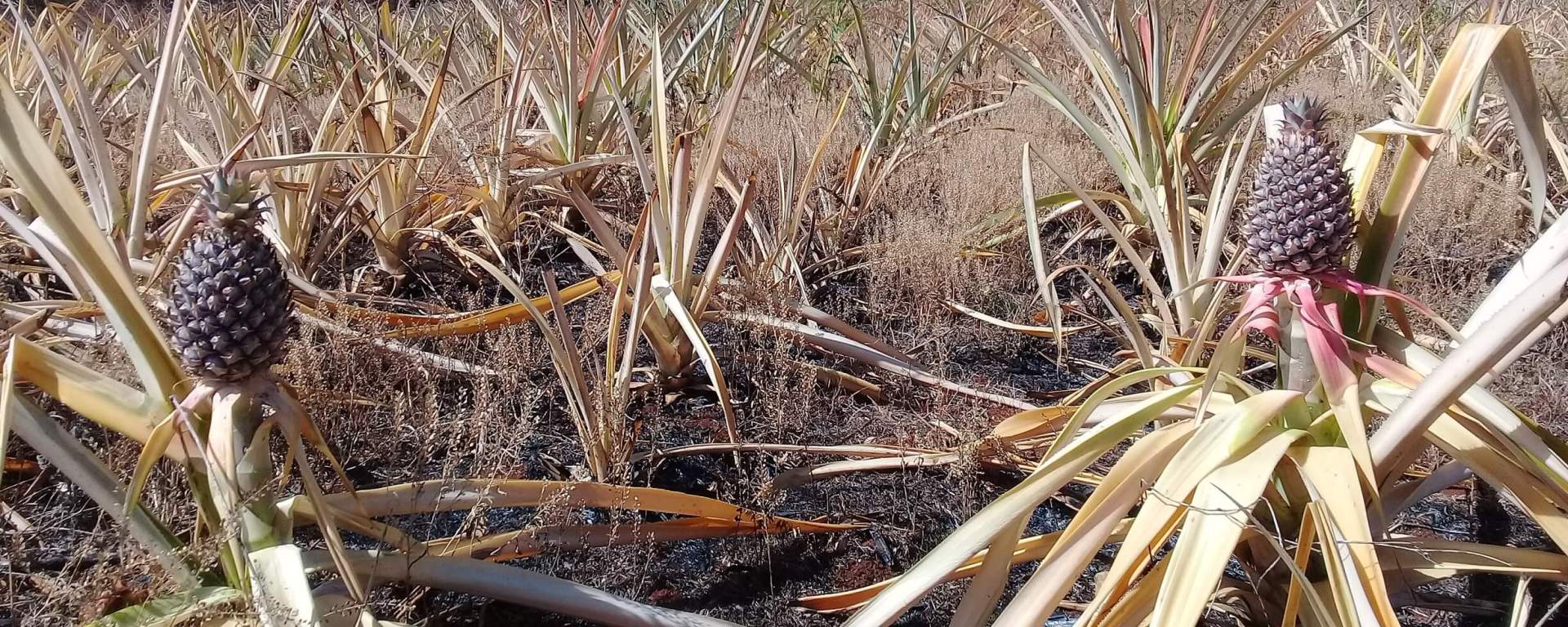 Realidades.- Daños aún incuantificables ha dejado a su paso un incendio forestal que ha afectado a hectáreas de piña, plátano, maíz, palapas; además de maquinaria pesada y sistema de riego.