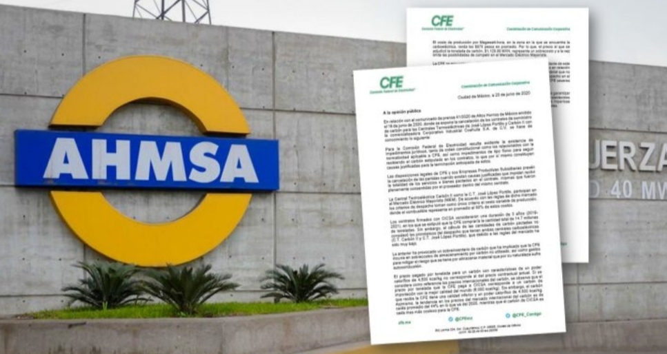 A través de un comunicado la CFE se informó sobre la cancelación a Altos Hornos de México y se explica las razones de la cancelación de los contratos de suministro de carbón para las Centrales Termoeléctricas de José López Portillo y Carbón II.