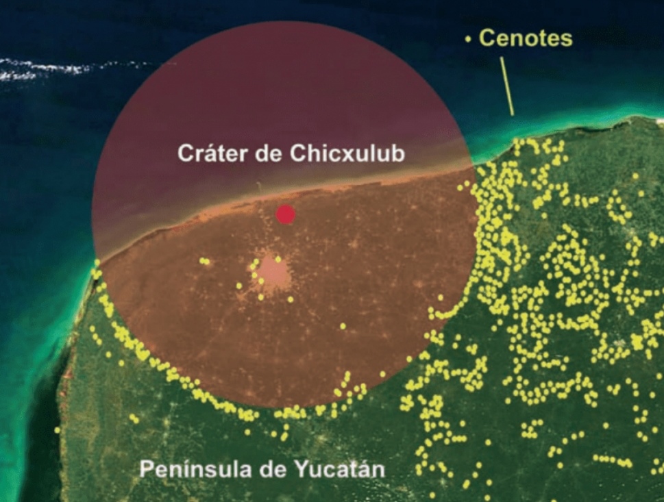 Realidades.- Se denomina Anillo de cenotes a un área natural con protección estatal en Yucatán, México. Consiste en una alineación semicircular de cenotes, relacionada con la teoría del impacto, hace unos 65 a 70 millones de años del asteroide que produjo el cráter de Chicxulub al chocar contra el planeta en lo que hoy es la península de Yucatán, determinando el final de la Era Mesozoica y la formación de este anillo de cenotes al fracturar las rocas de carbonato de calcio que conforman la plataforma peninsular.