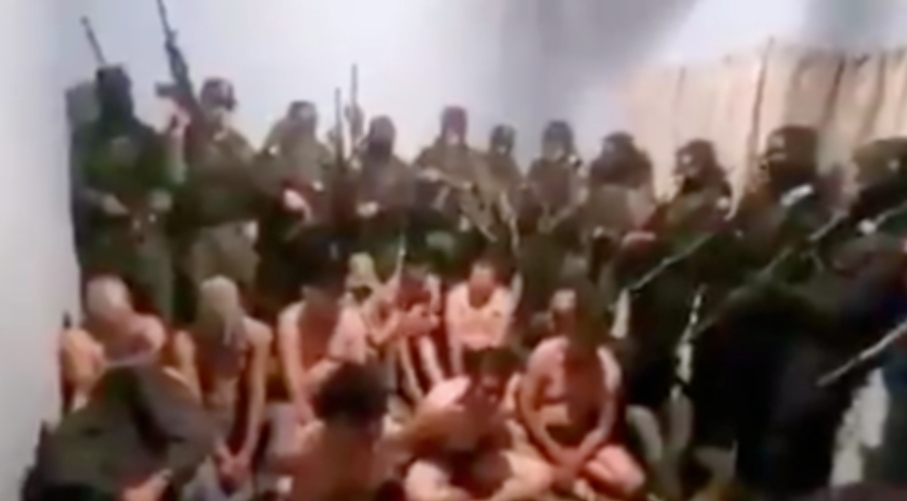 En las imágenes aparecen al menos doce sicarios con armas largas interrogando a una decena de víctimas semidesnudas sentadas en el suelo con las manos atadas.