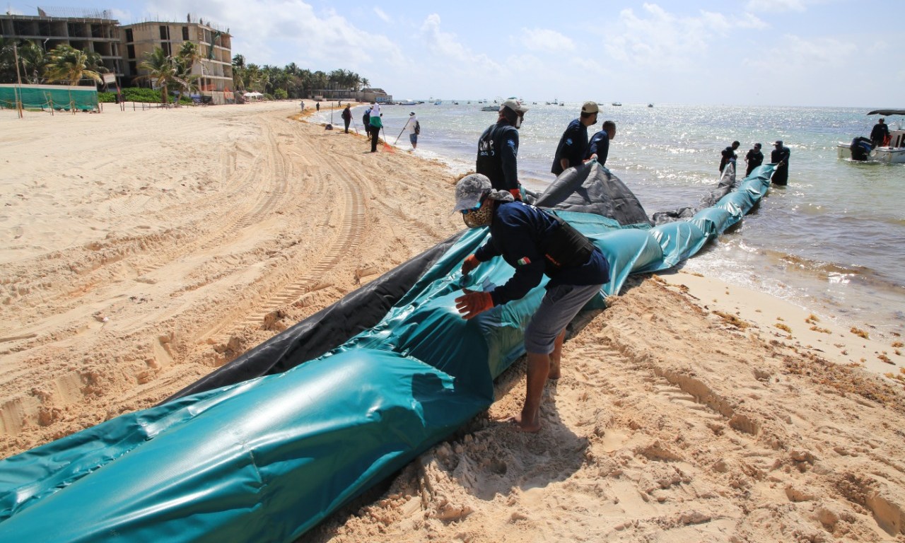 Realidades.- Con 40 por ciento de avance en la instalación de la barrera que evitará la llegada de sargazo a Playa del Carmen, el gobierno de Solidaridad refuerza las acciones de reactivación del turismo y cuidado de las playas.