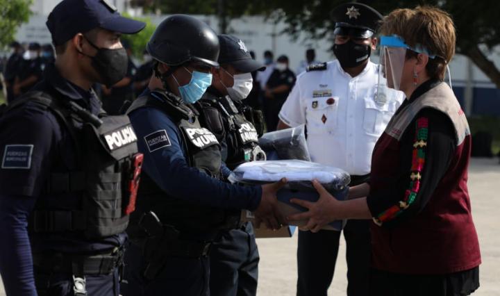 Entrega Laura Beristain nuevo equipamiento para la policía municipal de Solidaridad