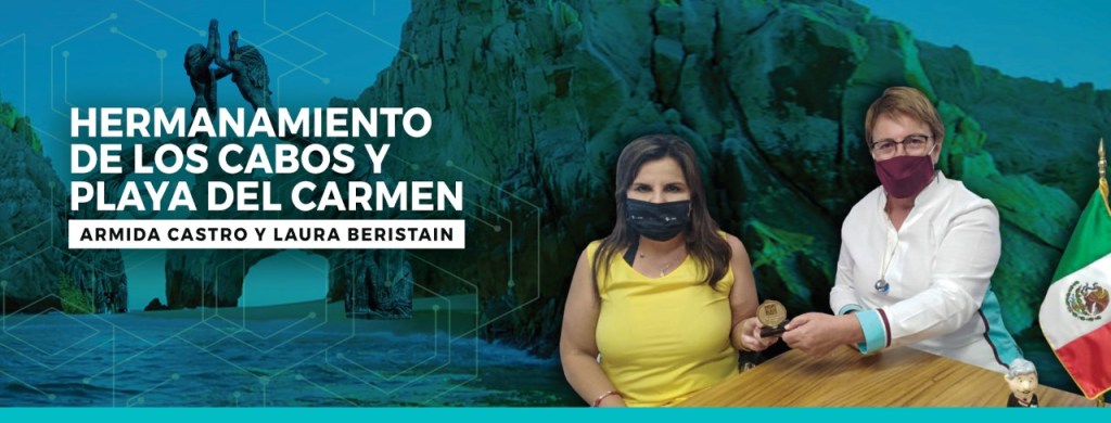 La presidenta Laura Beristain Navarrete destacó que Los Cabos y Playa del Carmen gozan de prestigio mundial como destinos turísticos, compartiendo retos y logros gracias a esta noble industria que hoy pasa por momentos especiales debido a contingencia sanitaria por COVID-19, de los cuales –dijo-saldrán fortalecidos trabajando unidos.