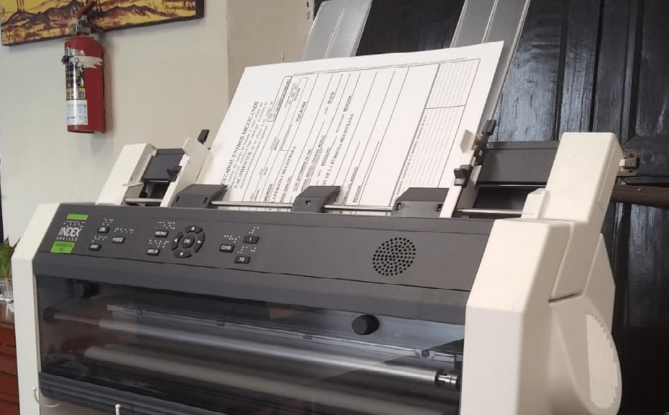 Se trata de un formato que les permitirá leer su información del estado civil a través del acta de nacimiento, tanto el sistema braille como el ordinario. Los datos se envían a la impresora especializada, que en segundos traduce y plasma los caracteres de este lenguaje en el acta de nacimiento, con lo que la persona por sí misma puede corroborar si esos son correctos.