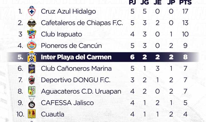 Realidades.- El Inter Playa se juega el todo por el todo por mantenerse en zona de calificación de las primeras cuatro posiciones de su grupo y matemáticamente tiene como rival directo a su acérrimo rival, Pioneros de Cancún con quién … Continúa leyendo Inter Playa regresa a casa después de derrota en Cuautla, obligado a ganar ante Azores de Hidalgo para continuar en la lucha por la clasificación de la Liga Premier FMF
