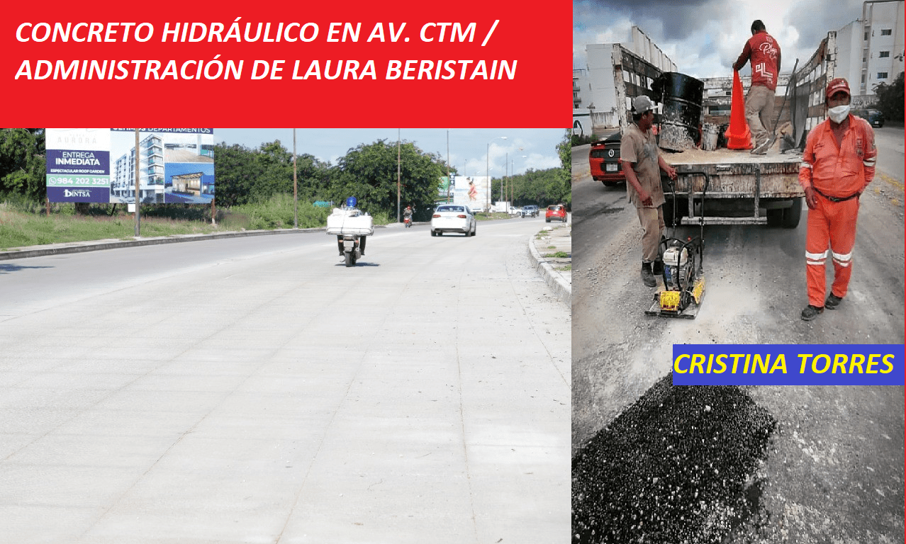 Por otro lado, la presente administración de Laura Beristain re-encarpetó las avenidas Av. 115 y Av. CTM con concreto hidráulico con una visión de largo plazo para que no se generen baches durante la época de lluvias.
