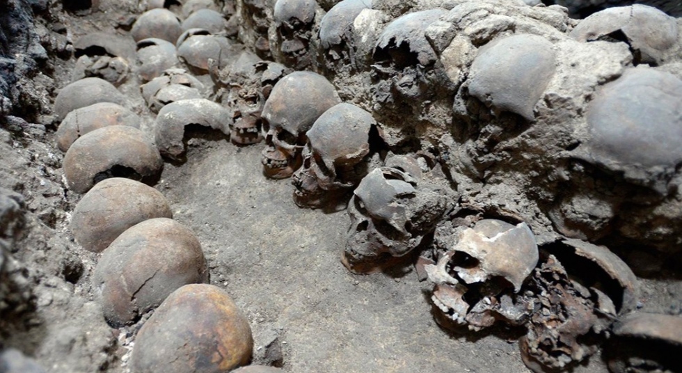 Realidades.- Arqueólogos mexicanos hallaron en el Centro de la Ciudad de México una torre de cráneos humanos dedicada al dios mexica Huitzilopochtli.