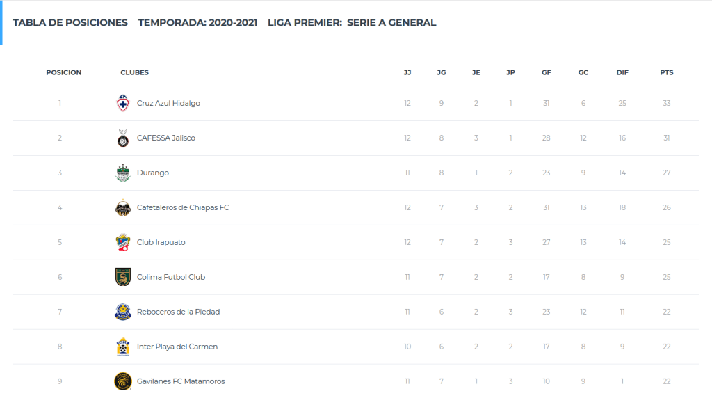 Cabe puntualizar que el Club Inter Playa tiene 2 juegos menos por problemas de contagios por parte de sus rivales que solicitaron aplazar los juegos. Sin embargo la estadística es buena con seis juegos ganados, dos empates y dos derrotas, una de ellas frente Aguacateros de Uruapan (atípica rompe-quinielas) y otra frente al líder del torneo Cruz Azul Hidalgo en calidad de visitante en trepidante juego.