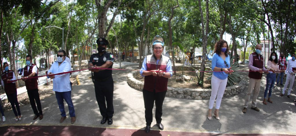 Realidades.- Playa del Carmen, Quintana Roo, a 15 de marzo del 2021.- Entrega la presidenta municipal Laura Beristain Navarrete la terminación de la obra de remodelación del segundo parque de Villas del Sol, un espacio habilitado para la sana recreación de niños, jóvenes y sus familias, lo que contribuirá a fortalecer el tejido social. “Hasta hace poco, los mayores esfuerzos y recursos de mi administración fueron destinados a la prevención y mitigación de los efectos de la pandemia. Pero ahora, gradualmente, no solo hemos logrado retomar las metas y programas pendientes —avanzar en la vacunación a nuestros adultos mayores—, sino que estamos consolidando un proyecto de obra pública sin precedentes en nuestra municipalidad”, destacó tras resaltar que, con esta obra, serán favorecidos los residentes de Villas del Sol, al ser este uno de los parques más concurridos por los habitantes de este fraccionamiento. El secretario de Ordenamiento Territorial Municipal y de Sustentabilidad, David Duarte Castilla, informó que en esta obra se aplicaron recursos del Ramo 33 del Fondo de Aportaciones para el Fortalecimiento de los Municipios (Fortamun), por 9 millones 932 mil 679.24 pesos en beneficio de sus habitantes. La obra incluyó la barda perimetral, pérgolas, remodelación de la cancha de fútbol rápido y la de usos múltiples, mesa de ajedrez, basureros, malla ciclónica en canchas, ejercitadores, juegos infantiles, fuente seca, seis plataformas de recreación, mobiliario, jardineras, sanitarios, asadores e instalación eléctrica. Además, se rehabilitaron andadores, banquetas, bancas, luminarias, pisos ecológicos, guarniciones y áreas verdes. La presidenta municipal Laura Beristain Navarrete le apuesta a las obras y programas que contribuyan al fortalecimiento de la unidad familiar y la sana convivencia social, por lo que para el presente año continuará impulsando obras enfocadas a habilitar los espacios públicos para dignificar y mejorar la imagen urbana.