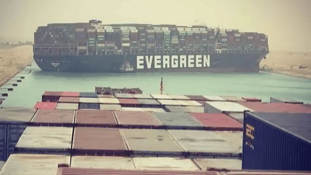 El portacontenedores de la empresa taiwanesa Evergreen y bandera panameña tiene 400 metros de longitud y capacidad para 224.000 toneladas, y se quedó atravesado debido a los fuertes vientos en medio de una tormenta de arena que azotó esta semana Egipto y que dificultaba la visibilidad.