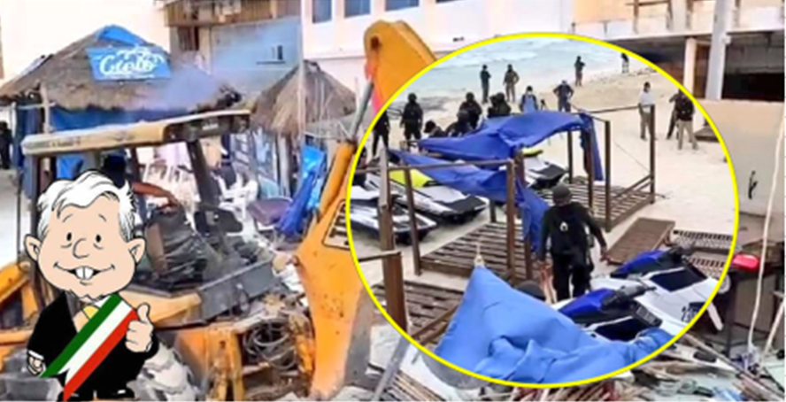 La operación comenzó alrededor de las 5:30 horas, cuando los uniformados arribaron con trascabos y camiones de carga, con los cuales quitaron mobiliario, colchonetas, camastros, motos acuáticas y palapas que empleados del antro instalaron ilegalmente sobre la franja de arena.