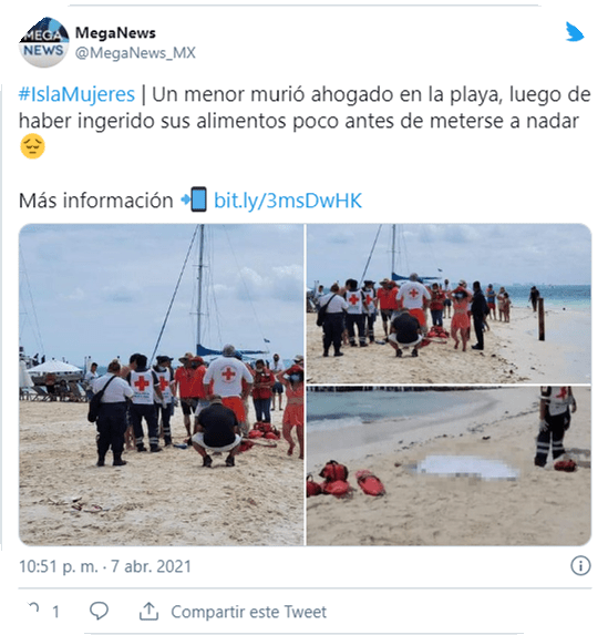 ue “alrededor de las 14:00 horas cuando el número de emergencia recibió un reporte solicitando la ayuda médica en una playa de la isla, pues estaban trasladando a un menor que comenzó a sentirse mal cuando estaba nadando”, informó el Diario de Yucatán.