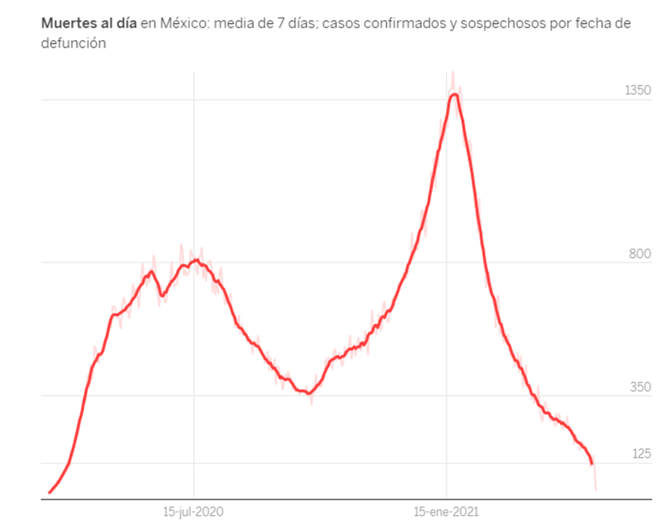 México ha sido uno de los países que más ha sufrido con la pandemia. Cientos de miles de muertes divididas en dos grandes picos que, hoy, se encuentran en su valle más pronunciado desde prácticamente el inicio del problema.