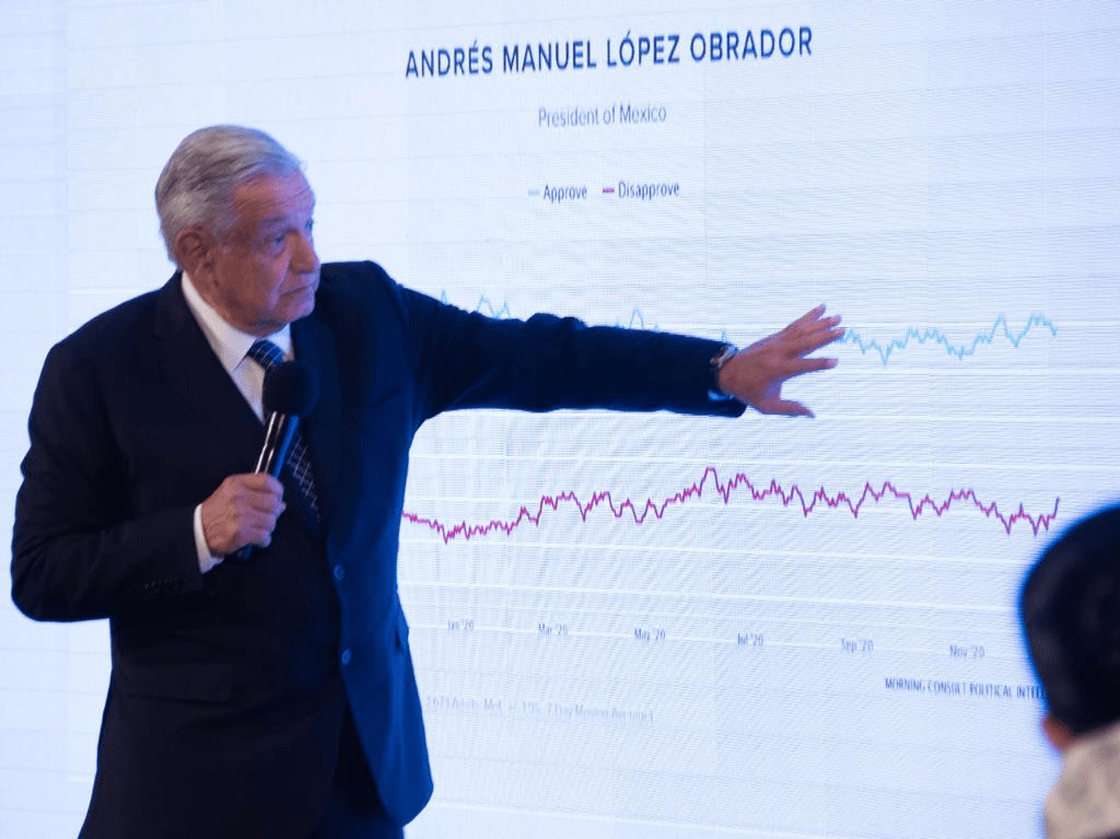 En la conferencia matutina en Palacio Nacional difundió los resultados de la encuesta Global Leader Approval Tracker, sobre 13 líderes mundiales, elaborada por la empresa Morning Consult Political Intelligence, y aseguró que “cuando estemos abajo, entonces va a ser el momento de la despedida”, pues enfatizó que si eso sucede no será necesario que sus adversarios lo cuestionen, “si el pueblo no quiere, no apoya, no se puede gobernar”.
