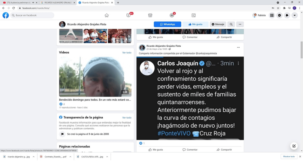 En su red social Facebook, se ve el “intenso” trabajo que realiza Ricardo Grajales Flota.