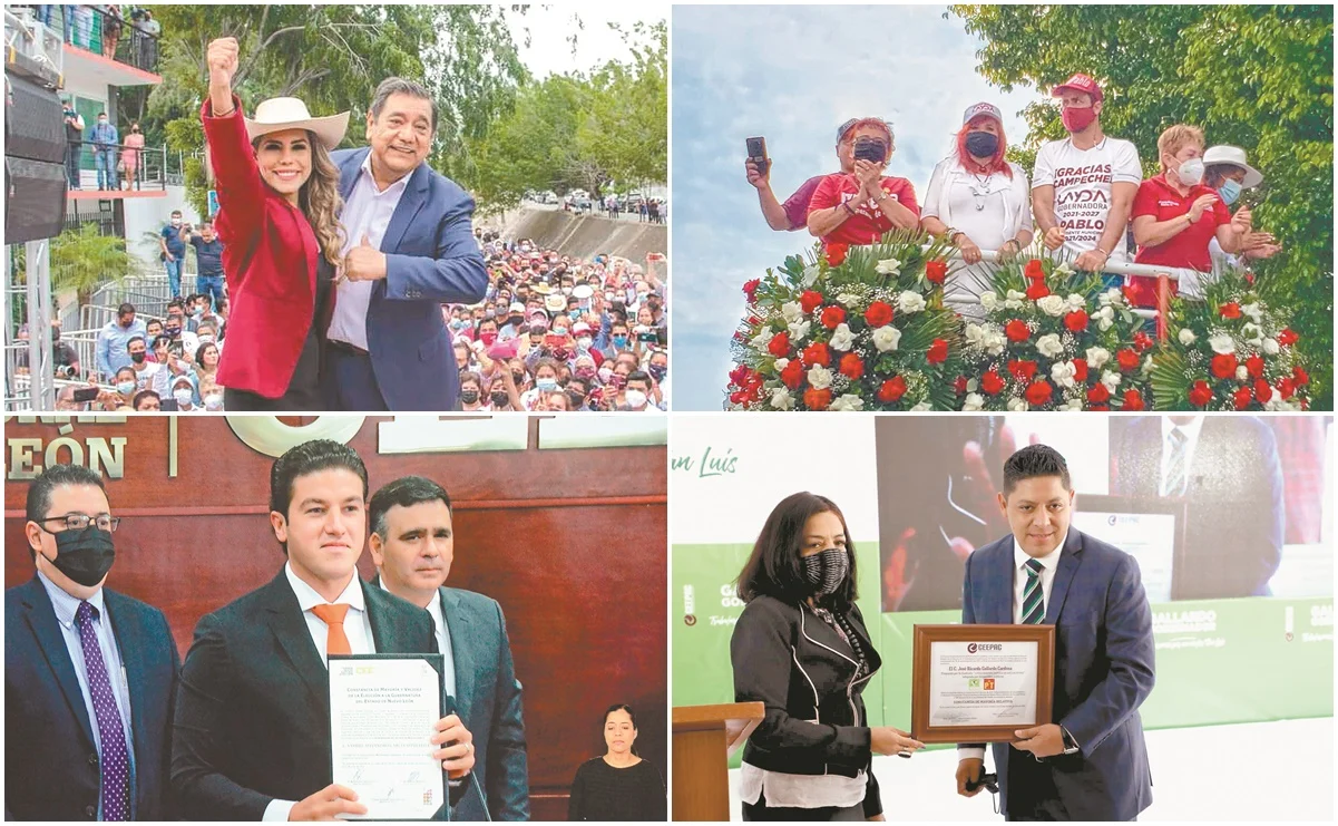 Realidades.- Autoridades electorales entregaron constancias de mayoría como gobernadores electos de Campeche, Michoacán, Baja California Sur, Chihuahua, Guerrero, Sinaloa, Nuevo León, Querétaro, San Luis Potosí, Sonora, Tlaxcala y Zacatecas a Layda Sansores, Alfredo Ramírez, Víctor Castro, María Campos, Evelyn Salgado, Rubén Rocha, Samuel García, Mauricio Kuri, José Gallardo, Alfonso Durazo, Lorena Cuéllar y David Monreal, respectivamente.