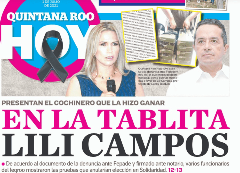 Playa del Carmen.- Debido a las pruebas irrefutables presentadas en la denuncia ante la Fiscalía Especializada en Delitos Electorales (Fepade) en donde consta el cochinero que realizaron las autoridades electorales locales a favor de la candidata del Partido Acción Nacional (PAN), Lili Campos Miranda, las elecciones de Solidaridad serían las únicas anuladas.