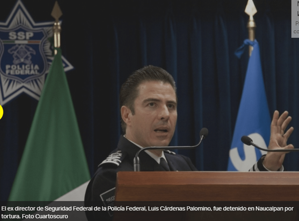 Realidades.- Ciudad de México. El ex director de Seguridad Federal de la Policía Federal, Luis Cárdenas Palomino, fue detenido este lunes en Naucalpan, Estado de México, según confirmó la Fiscalía General de la República (FGR).