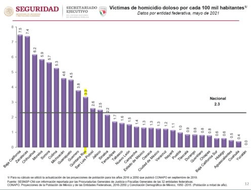En mayo de 2021 registró cero homicidios dolosos, y comparado con mayo de 2020 cero homicidios dolosos.