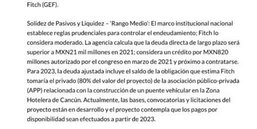 El reporte de Fitch Ratings dice textualmente, cómo puede verse abajo: