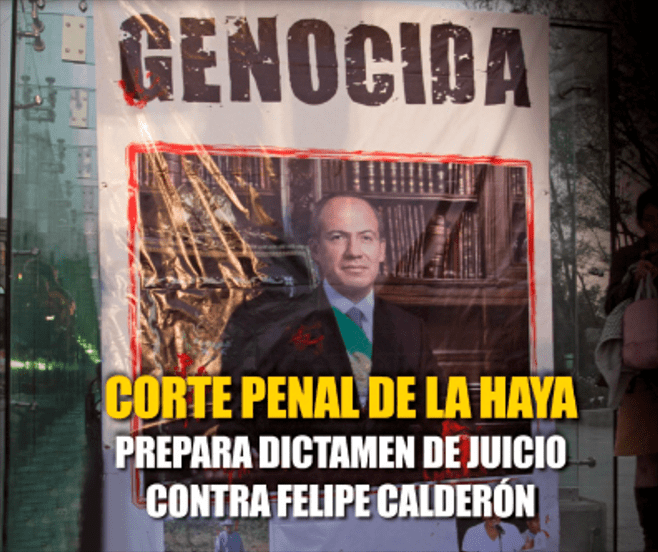 El 25 de noviembre de 2011 se presentó ante ese tribunal internacional una denuncia con suficientes pruebas, firmada por más de 20 mil ciudadanos, en donde se solicita juzgar a funcionarios, militares y narcotraficantes mexicanos, entre ellos al entonces presidente Felipe Calderón Hinojosa, por crímenes contra la humanidad repetidos sistemáticamente durante su gobierno (diciembre de 2006-noviembre de 2012), como asesinatos, desapariciones forzadas, torturas, violaciones sexuales, ejecuciones extrajudiciales, persecuciones y migración forzosa, entre otros delitos de lesa humanidad.