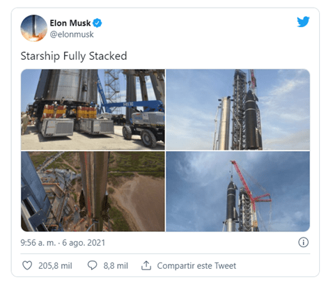 El fundador y director ejecutivo de la empresa, Elon Musk, también compartió una serie de imágenes en las que se puede ver el Starship SN20 en la plataforma, dando la impresión de que será lanzado pronto. «Sueño hecho realidad», comentó el magnate en un tuit.