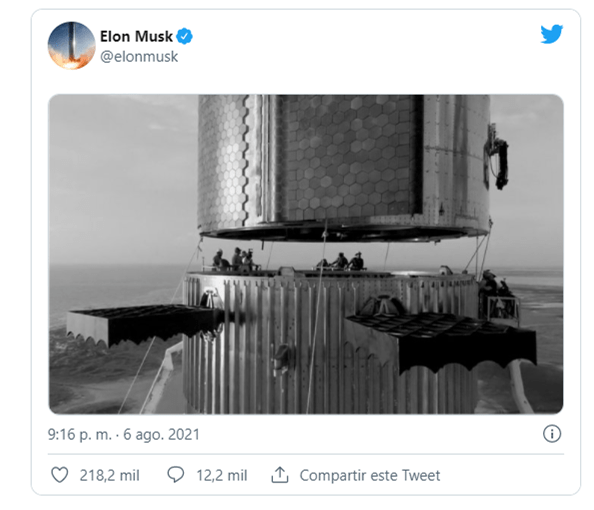 Realidades.- Recientemente la compañía finalizó la instalación de los potentes motores Raptor y sigue adelante con los preparativos para lanzarlo al espacio en un vuelo de prueba.