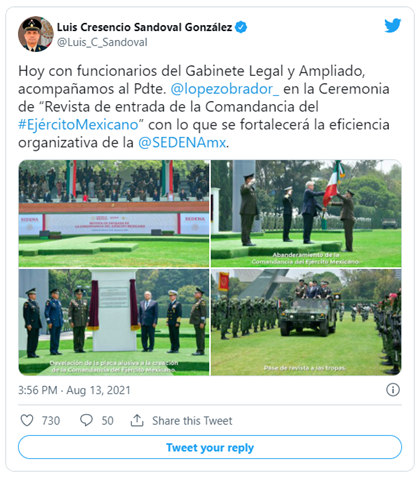 Ahora, con esta nueva Comandancia se busca optimizar el funcionamiento de los diferentes organismos de la Secretaría de la Defensa Nacional para que, conforme al proyecto de nación, se pueda responder de mejor manera a las demandas de la sociedad mexicana.