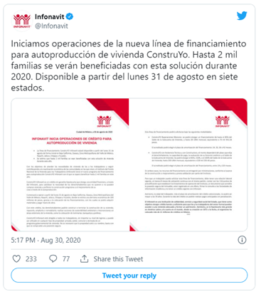 REALIDADES, CIUDAD DE MÉXICO.- El crédito ConstruYO del Instituto del Fondo Nacional de la Vivienda para los Trabajadores (Infonavit) fue lanzado por el 31 de agosto de 2020 y no requiere garantía hipotecaria. Aquí te diremos cuáles son los requisitos se necesitan para obtenerlo.