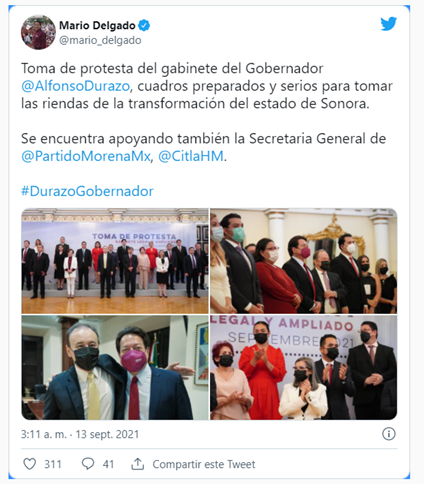 — Alfonso Durazo (@AlfonsoDurazo) September 13, 2021
