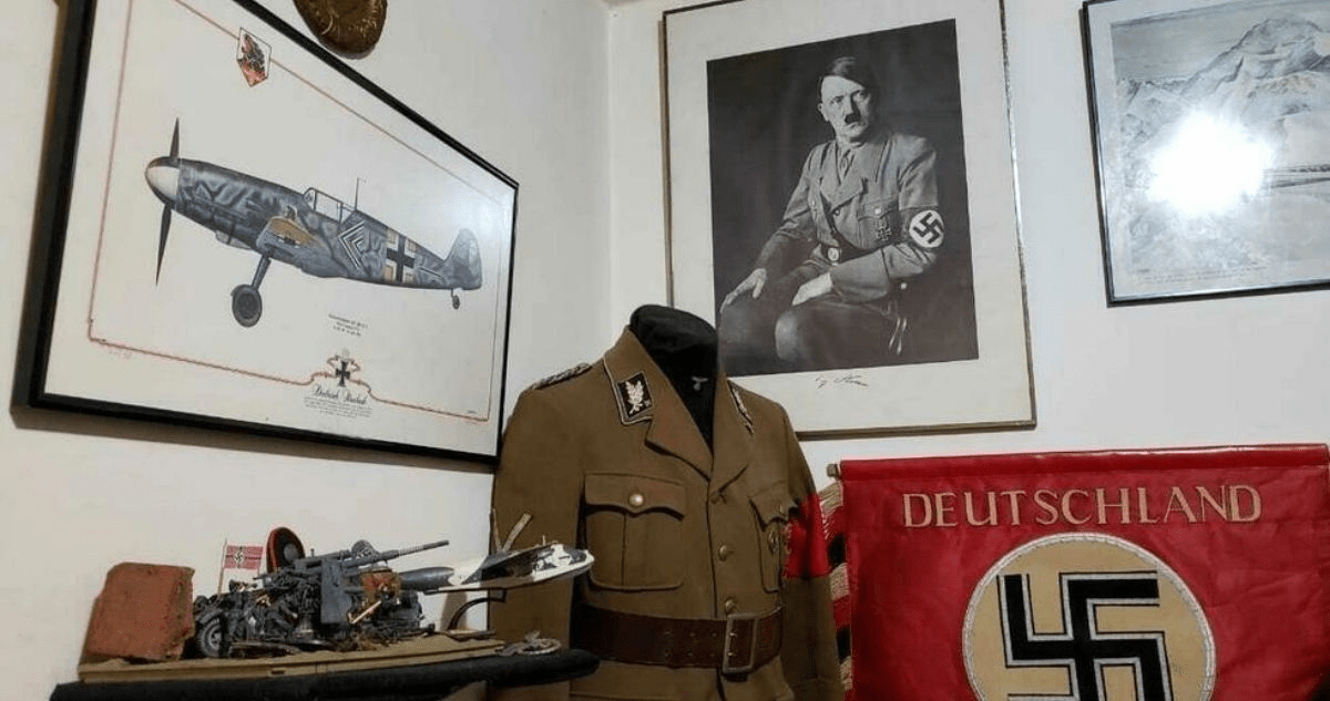 La policía encontró «material monstruoso» de índole nazi, incluidas insignias, documentos, uniformes, banderas e incluso una presunta tarjeta de membresía del partido nazi -evidentemente falsificada- con la foto del sospechoso.