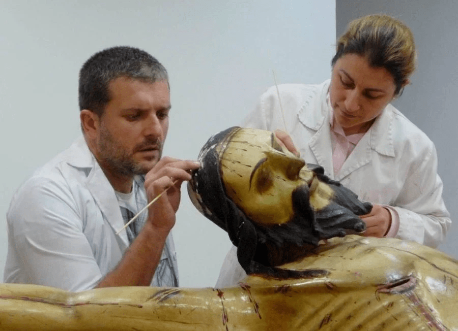 “Como había estudiado y clasificado esta figura, la Hermandad responsable de los cultos de la imagen me encargó su restauración, y al comenzar a estudiarla e introducir una cámara para evaluar su estado interno, nos encontramos con que un roedor había retirado algunas partes de papel para construir su madriguera y, al hacerlo, reveló un códice tributario pintado en los albores de la Nueva España”.