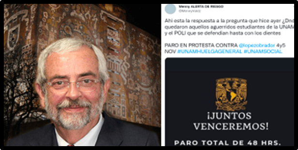Realidades.- Busca enviar señales de conciliación. Gana más de 200 mil pesos mensuales. Quejas por las llamadas no respondidas de Lira.  En plena confrontación contra Andrés Manuel López Obrador, el rector de la UNAM Enrique Graue ahora analiza desplazar de … Continúa leyendo Caída la mediación de Narro, Graue analiza desplazar a ex funcionario de Peña Nieto y bajarse el sueldo