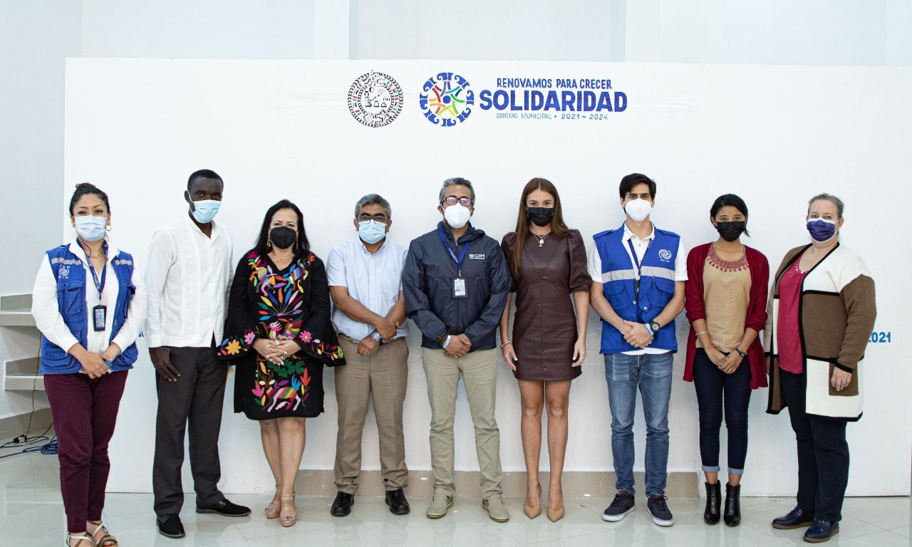 En ese sentido, representantes de la OIM se reunieron con autoridades del Municipio de Solidaridad, entre ellas la Regidora Valentina Álvarez como presidenta de la Comisión Edilicia de Asuntos Nacionales e Internacionales y de Atención al Migrante, de igual forma asistieron el Secretario General del Ayuntamiento, Lic. Juan Novelo y la Lic. Leticia Chaverri, titular de la dirección municipal de atención a migrantes.