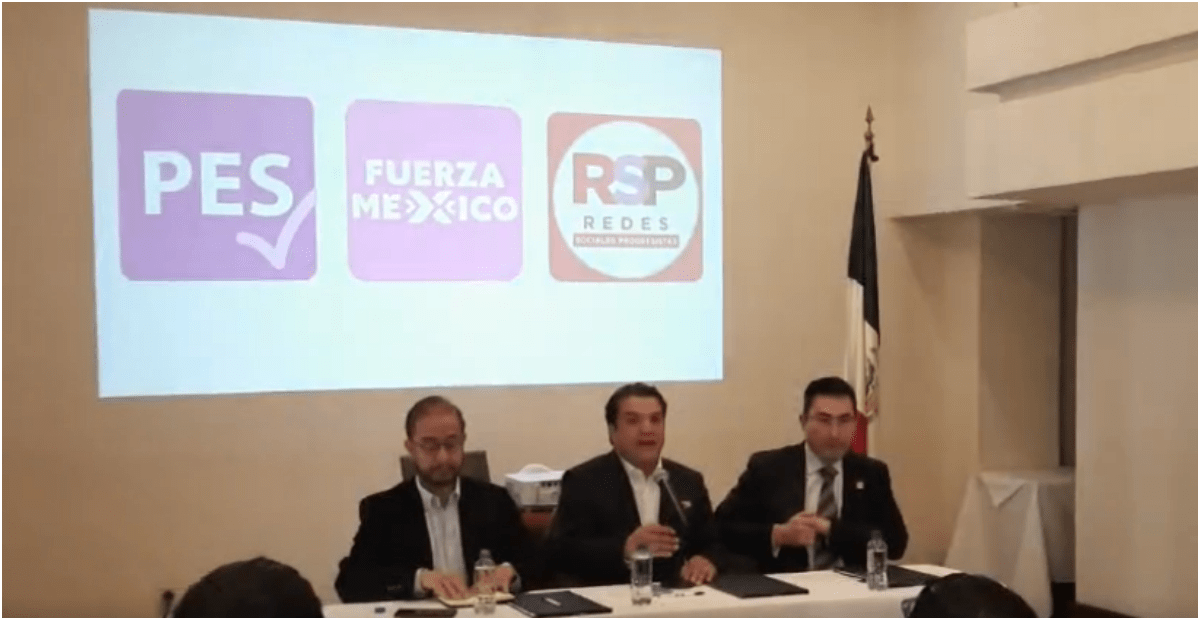 En conferencia de prensa, este jueves Gerardo Islas del Fuerza por México, Fernando González de Redes Sociales Progresistas , y Hugo Eric Flores de Encuentro Solidario anunciaron que impulsarán ahora candidatos en común para las gubernaturas de Aguascalientes, Oaxaca, Hidalgo, Durango, Tamaulipas y Quintana Roo.