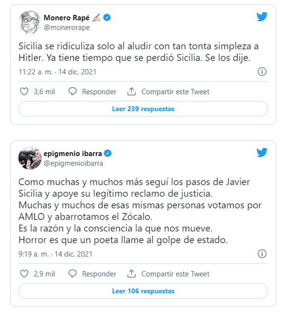 En una columna de opinión, titulada «En el espejo de Hitler», Sicilia arremetió específicamente contra el masivo acto que lideró López Obrador a principios de este mes, en el Zócalo de Ciudad de México, para celebrar los tres años de lo que su gestión ha denominado como la ‘Cuarta Transformación’.