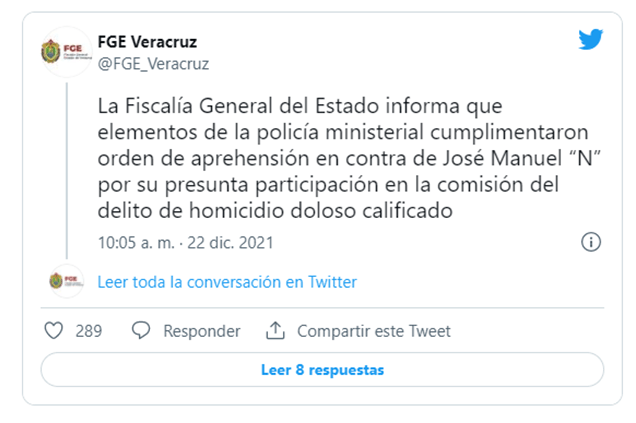 a Fiscalía General del Estado informó sobre la detención de José Manuel del Río a través de un escueto comunicado. El ex diputado es relacionado con el asesinato del candidato a la alcaldía de Cazones de Herrera por Movimiento Ciudadano, René Tovar, delito por el que también está preso el alcalde electo de Cazones, Omar Ramírez Fuentes.