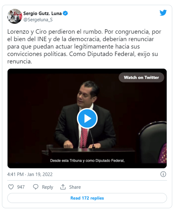Esto debido a que, acusó el legislador, los consejeros Lorenzo Córdova y Ciro Murayama han abusado del amparo mediante suspensiones para ganar más que el jefe del Ejecutivo federal, aún cuando se han hecho ajustes al presupuesto desde el 2019 para que ningún funcionario debe ganar más que el presidente de México, por lo que también exigió la renuncia de esos árbitros electorales.