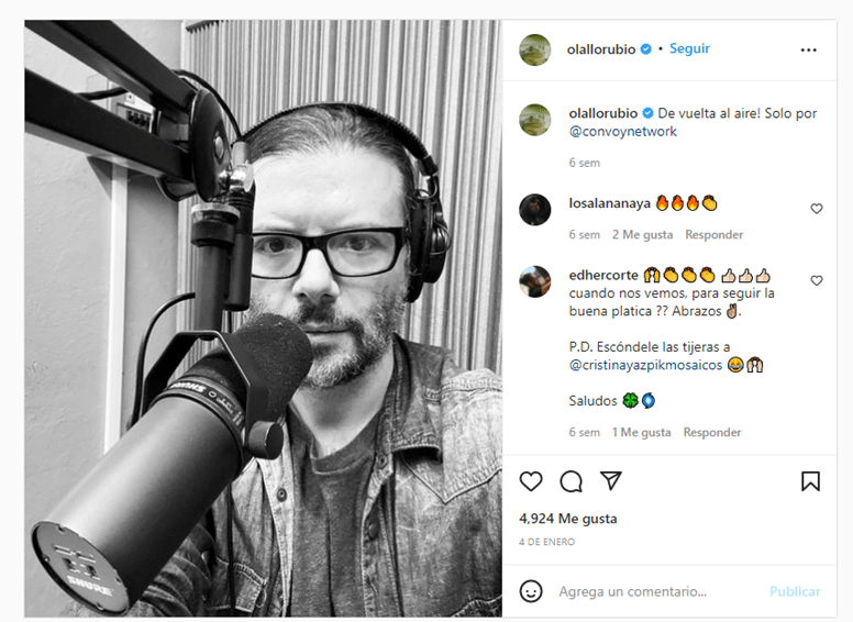 En un espacio recóndito de dicho número editorial había una pequeña columna que hablaba de lo que era el pódcast. Impulsado por el productor Javier Umpierrez, y en colaboración con él, ese mismo año presentó El pódcast de Olallo Rubio.